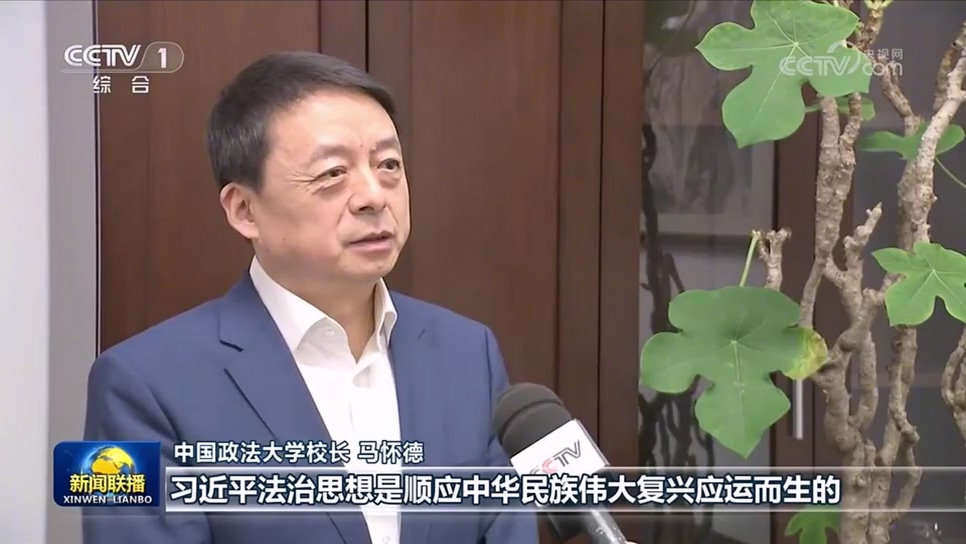 新思想引领新征程:坚持全面依法治国 夯实中国式现代化法治基石。中国政法大学校长马怀德接受央视采访。