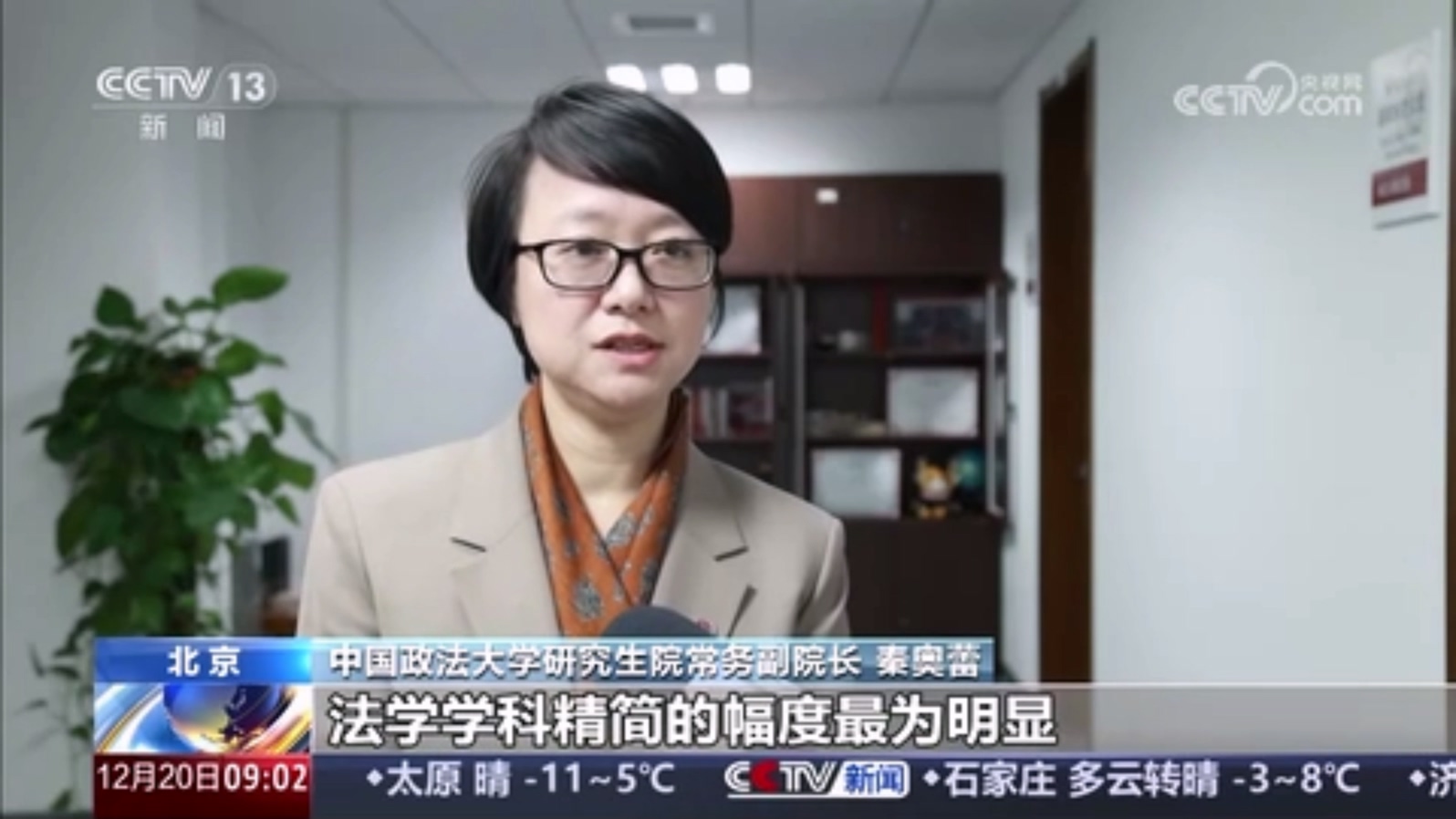 CCTV13『朝闻天下』:2026年全国硕士研究生招生考试今天开考 中国政法大学研究生院常务副院长秦奥蕾就专业学位硕士招生相关话题接受央视采访。