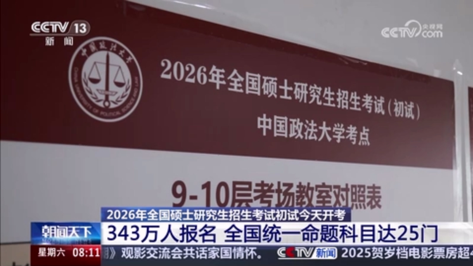 CCTV13『朝闻天下』:2026年全国硕士研究生招生考试初试今天开考。央视新闻关注我校组考工作。