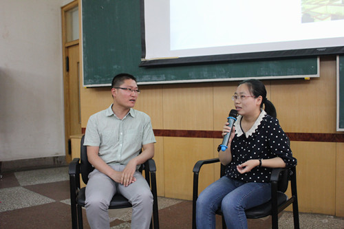 刘慧还邀请了10届毕业的村官代表孙浩然以及自主创业代表陈芳到场与同学们进行交流。两位优秀毕业生代表通过亲身经历,以座谈的形式向大家介绍工作的实际情况。
