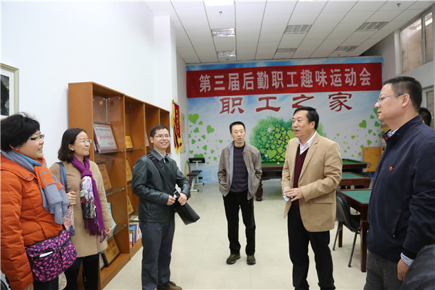 (冯世勇及各部门工会代表共同参观教职工小家)