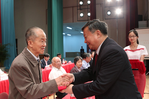 紧接着,校长黄进教授致辞。黄进高度肯定了民商院在人才培养、科学研究、社会服务、国际交流等方面取得的不俗成绩,褒扬了学院师生积极参与国家立法,服务执法、司法实践的行为。与此同时,黄进以江平教授在六十周年校庆庆祝大会上的讲话作引,分析了学院建设和发展中的困难和问题。最后,他对全院师生寄予诚挚的希望,愿全院师生能够抓住机遇,迎接新的挑战,不断为学校、为国家的法制建设和发展作出新的贡献。