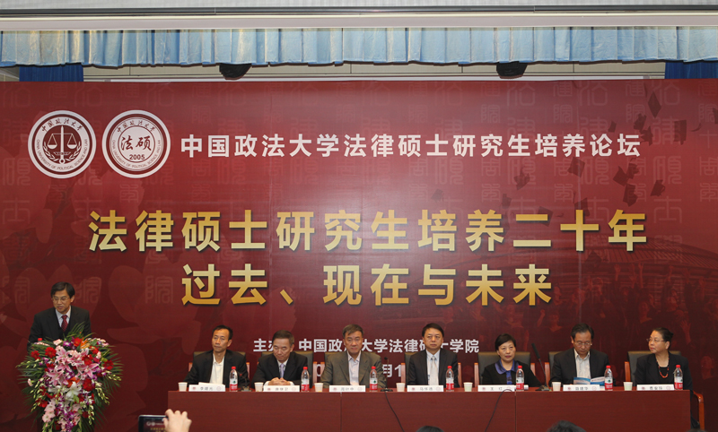 10月17日,法律硕士研究生培养论坛暨中国政法大学法律硕士学院十周年院庆活动在学院路校区综合科研楼二层学术报告厅举行,此次论坛的主题为“法律硕士研究生培养二十年:过去、现在与未来”,我校副校长马怀德、司法部国家司法考试司副巡视员王红、武汉大学副校长周叶中、教育部研究生司研究生培养处处长唐继卫、最高人民检察院公诉厅副厅长聂建华、中国政法大学研究生院院长李曙光出席开幕式并致辞。论坛开幕式由法律硕士学院副院长辛崇阳教授主持,我校终身教授江平、陈光中、张晋藩、应松年,校党委书记石亚军、副校长马怀德为法律硕士学院建院十周年题写了贺词。北京大学、清华大学、中国人民大学、西南政法大学、华东政法大学、中南财经政法大学等多所兄弟院校负责法律硕士研究生培养的领导、专家、教授;来自法院、检察院、律师事务所、企业法务等法律实务部门的校外导师代表、法律硕士学院实习基地代表以及本校教师和学生代表出席了开幕式。