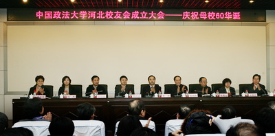 大会首先向全体与会人员介绍了河北校友会筹备情况;表决通过了《中国政法大学河北校友会章程草案》、机构设置及人选方案;选举出河北省人民政府原副秘书长赵国昌为会长,河北省政法委副秘书长李永君等9人为副会长,河北张金龙律师事务所主任张金龙为副会长兼秘书长。接着,黄进校长代表学校向河北校友会授予牌匾。