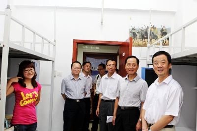 此次迎新工作得到了校领导的高度重视和各相关部门的大力支持。8月29日学院路校区新生报到现场,校党委书记石亚军、校长黄进,在副校长朱勇的陪同下先后视察了教学楼前联合办公现场和学生公寓一号楼,详细询问了新生报到工作的相关情况,亲切慰问了现场办公人员,并对新生表示了祝贺。