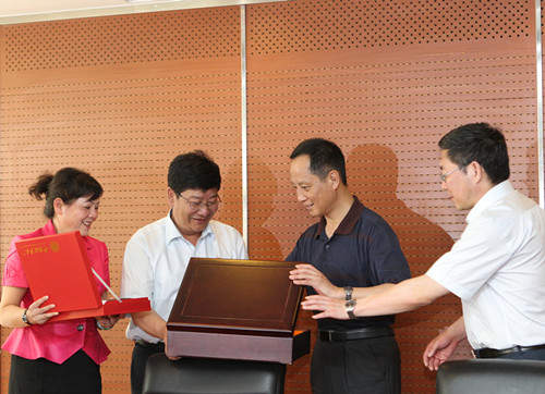 随后,黄进校长、陈厚义校长分别代表两校在合作协议上签字,石亚军书记、修耀华书记代表学校互赠纪念品。