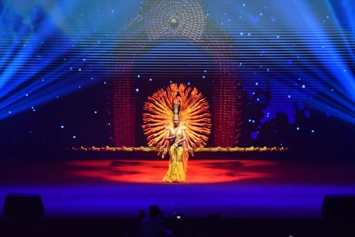 当观众仍沉浸在那份温暖之中,另一场极致的东方静美已悄然降临。传统文化完成从博物馆展柜到当代舞台的基因重组:《相印》舞出神秘敦煌的千年古韵;《天地之爱》以肢体传递深情,无声处彰显力量,震撼人心;《千手观音》如一朵金色的莲花缓缓绽放,二十一尊金佛般的身影,在精准的节奏与呼吸间,变幻出令人屏息的庄严与华美。她们的手臂如流动的光、交错的虹,在无声的世界里构建出纯净而广袤的和谐之境,让刹那成为永恒。
