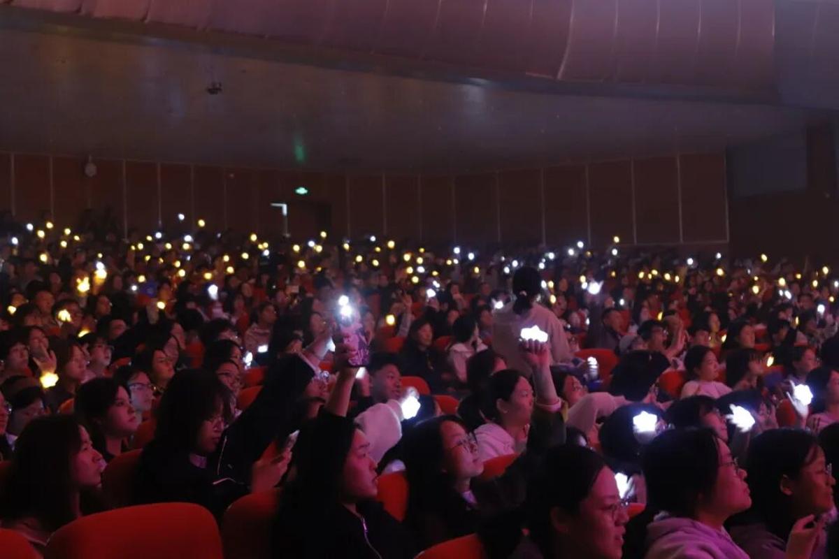 演出虽已落幕,感动却未止息。一片星星灯海在台下温柔摇曳,如萤火汇聚成河,同时大家将观演票根拼成的手语“爱”的图形展板赠送给残疾人艺术家。此外,来自灵心手语协会的同学带领全体师生通过手语表达“爱是我们共同的语言,我们明年再见”。
