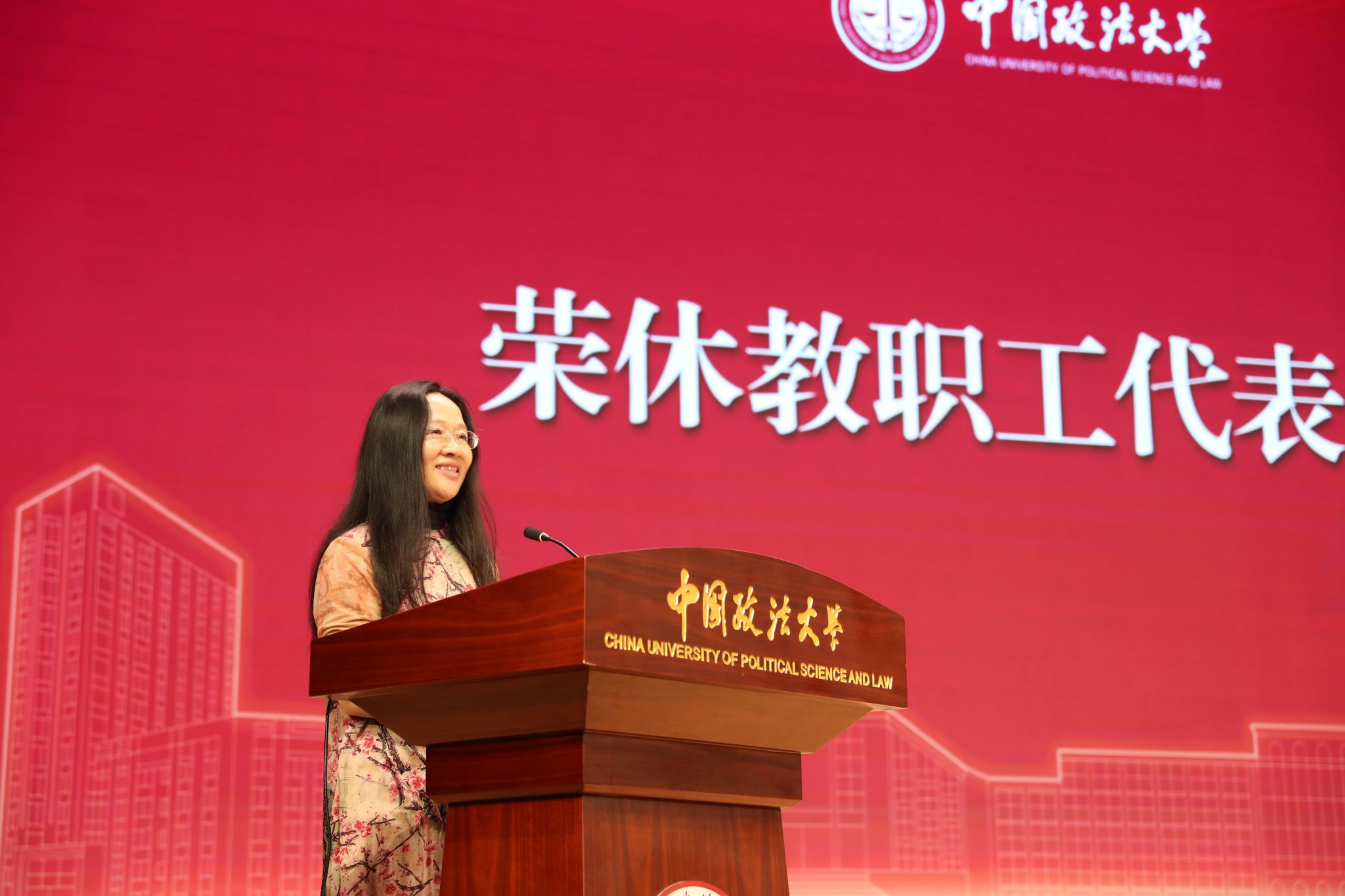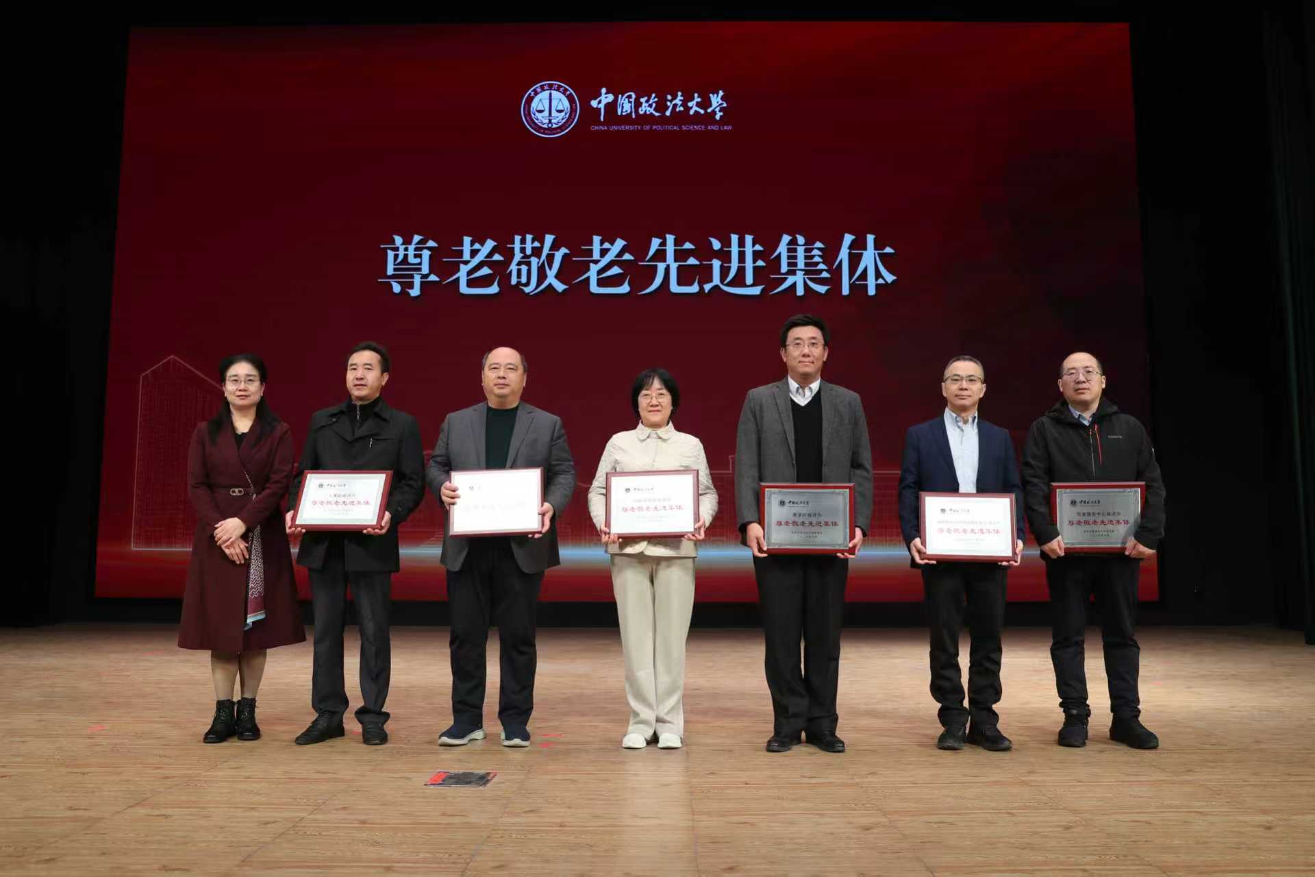 在大会表彰环节,颁发了尊老敬老先进集体、关心下一代工作先进单位、老有所为先进个人、离退休先进工作者等7个奖项。尊老敬老先进集体代表、国际法学院/涉外法治学院党委书记李欣宇,交流了学院爱老助老、搭建老同志立德树人平台的实际举措;老有所为先进个人代表、本科教学督导组组长刘长敏老师,从荣幸、感恩、奋斗三点感受,表达了继续书写自己法大故事的信心。