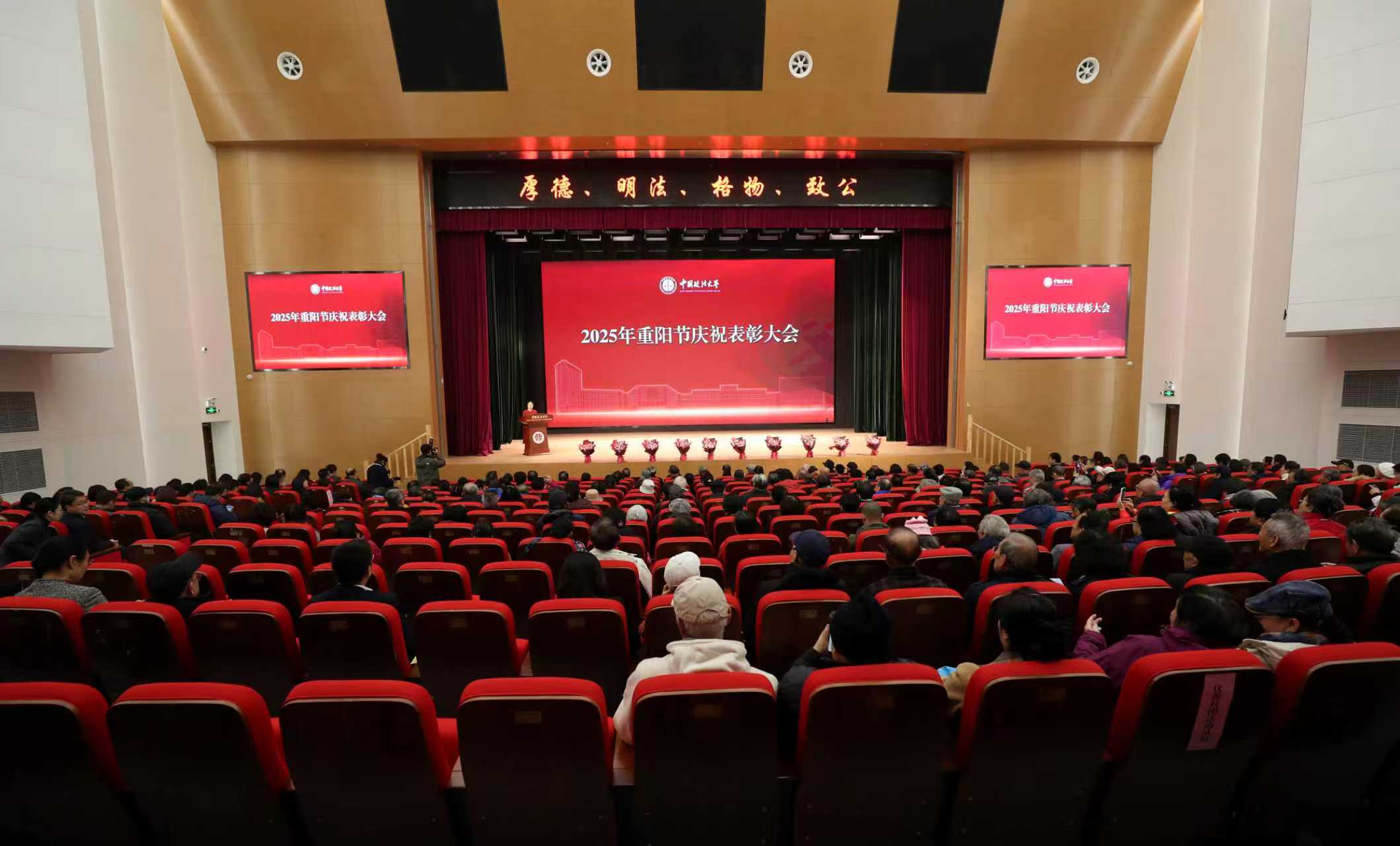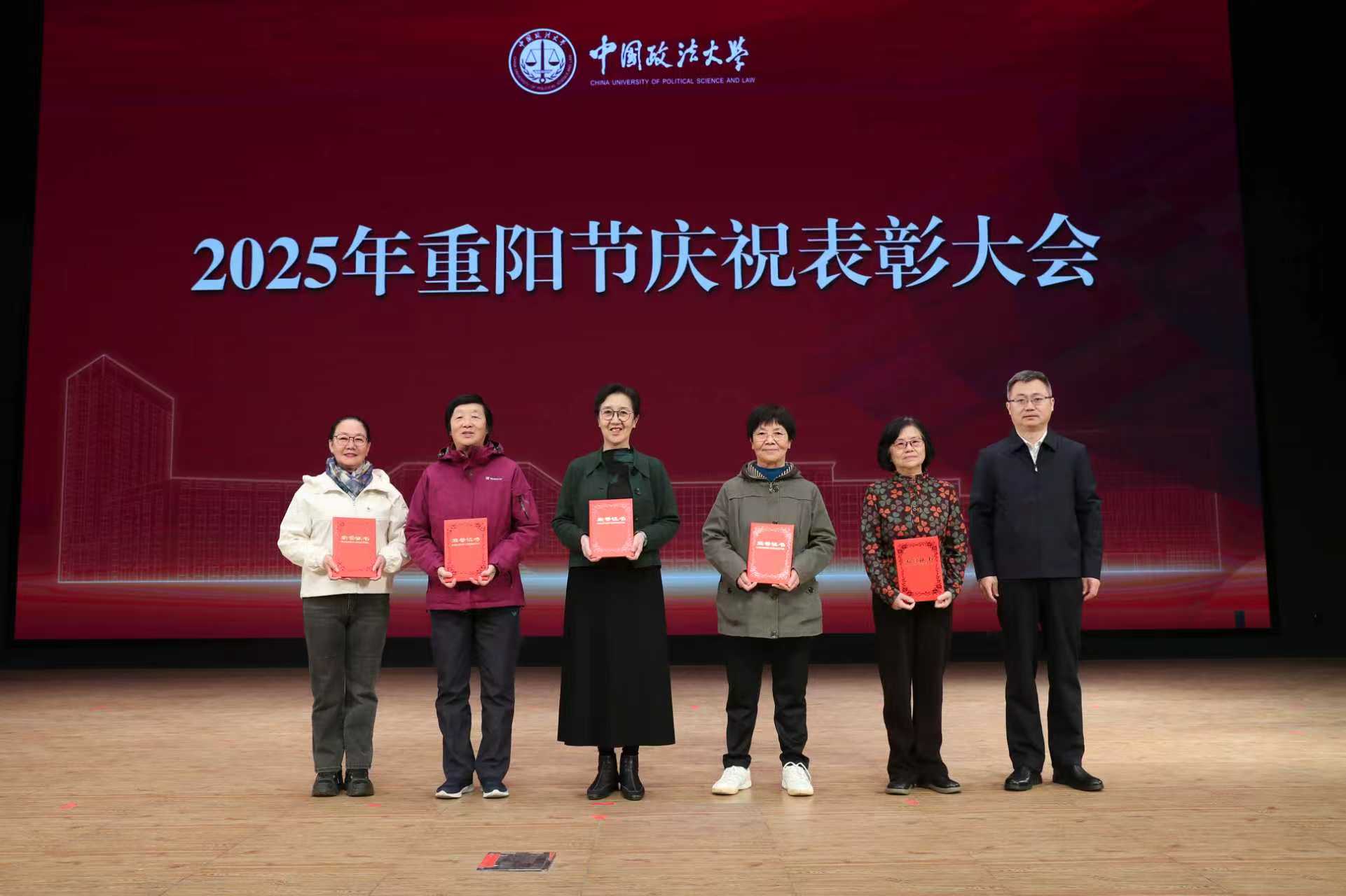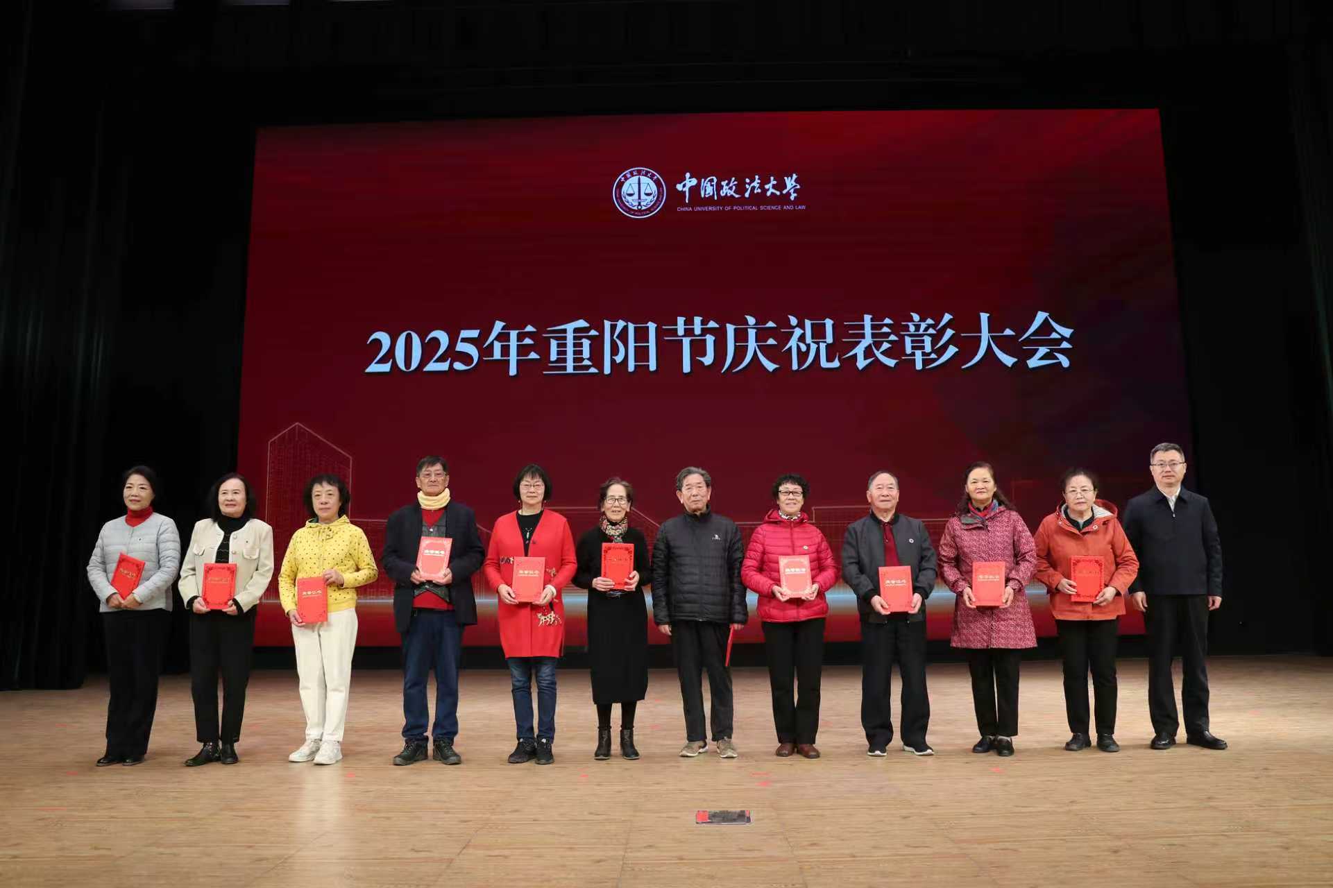 10月29日,中国政法大学2025年重阳节庆祝表彰大会暨新退休教职工荣休仪式在海淀校区隆重举行。校党委书记姜泽廷,党委副书记、纪委书记胡志钢,副校长刘艳红、王洪松,老领导赵相林、马抗美、陆炬、冯世勇、李秀云,离退休教职工代表、新入职教师、二级单位负责人、政法社区负责人,以及青年学生代表300余人与会,会议由党委副书记王立艳主持。