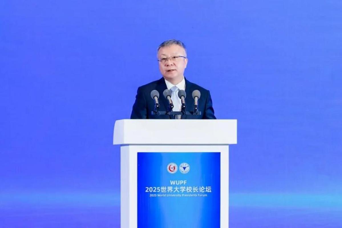 (任友群在2025世界大学校长论坛开幕式上致辞)