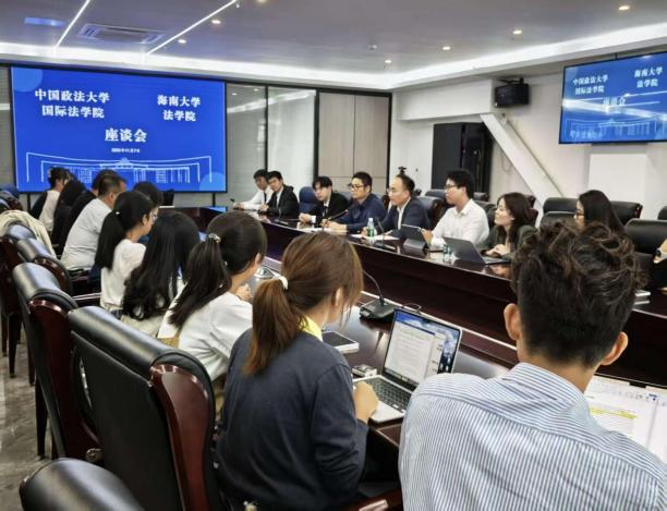 7日下午,实践宣讲团赴海南大学法学院开展涉外法治人才培养工作交流座谈会,两校涉外法治相关专业师生就国际模拟法庭、模拟仲裁庭竞赛,自贸港法、涉外法治课程开展等方面进行座谈交流,海南大学法学院魏德才、高婧如、侯之帅等老师及两校40余名学生参加活动。