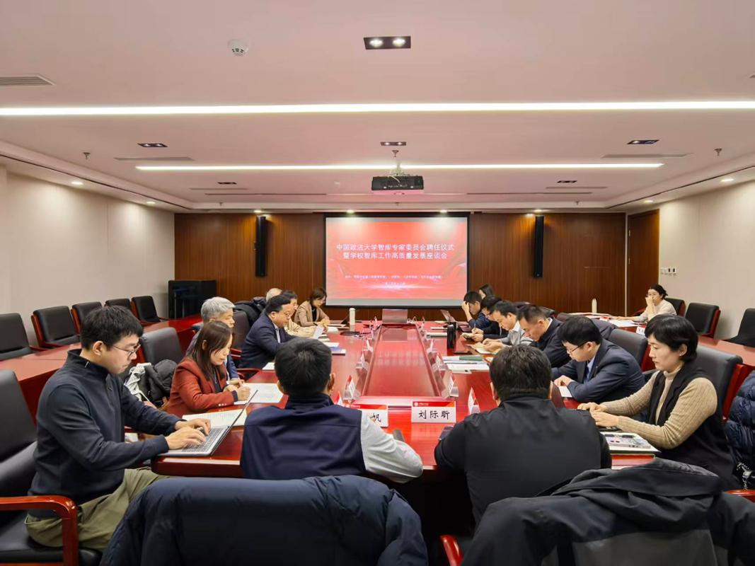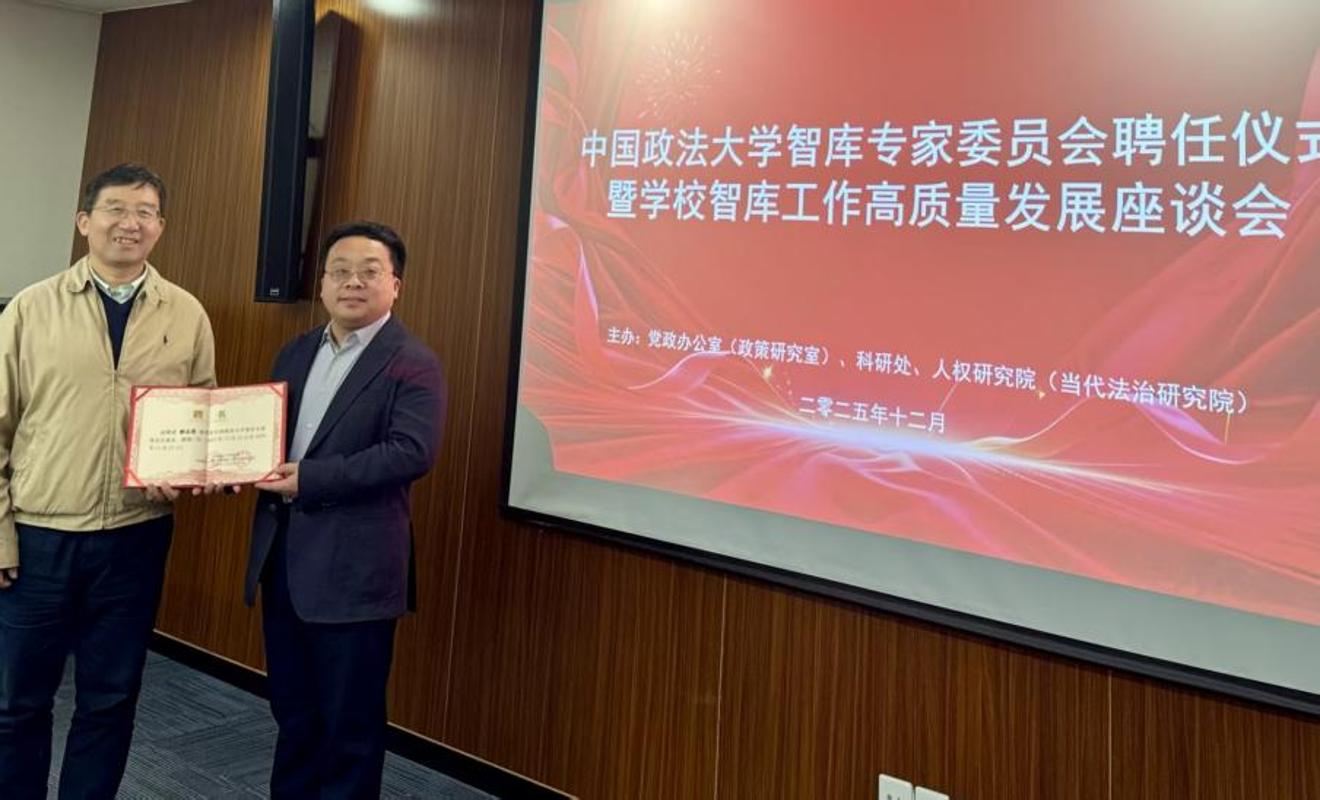 为进一步提升智库研究的前瞻性、战略性与决策影响力,系统构建有组织科研新格局,2025年12月25日上午,中国政法大学智库专家委员会成立仪式暨智库工作高质量发展座谈会在海淀校区举行。副校长于飞出席会议并讲话。首批受聘的智库专家委员会委员代表,学校党政办公室(政策研究室)、科研处、人权研究院(当代法治研究院)等部门负责人参会。会议由科研处处长、人权研究院(当代法治研究院)常务副院长林华主持。