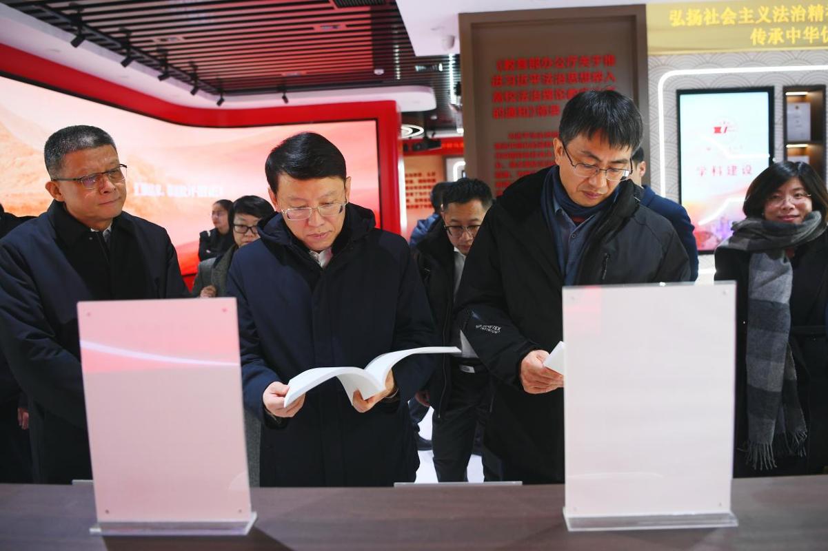 座谈指出,两校有着共同的红色基因和密切合作的良好基础,在习近平法治思想研究和国际传播、服务依法治疆、“一带一路”法治保障等方面有着共同的使命和责任,合作空间广阔。未来双方将突出各自区位优势、学科优势、人才优势,实现优势互补、相互支撑,在人才培养、科研创新、学科交叉建设等方面一体联合攻关,不断深化习近平法治思想“三进”,共建习近平法治思想研究和国际传播平台。聚焦“一带一路”沿线国家、周边国家法治需求,协同加强涉外法治、国际传播、金融法治、数据法治等紧缺领域人才培养。聚焦边疆治理现代化,在国家安全学、纪检监察学等新兴交叉学科建设上形成合力,为法治中国建设、实现中国法学教育的跨越式发展作出贡献。会前,调研团一行参观了西北政法大学校史馆和习近平法治思想“三进”展室。