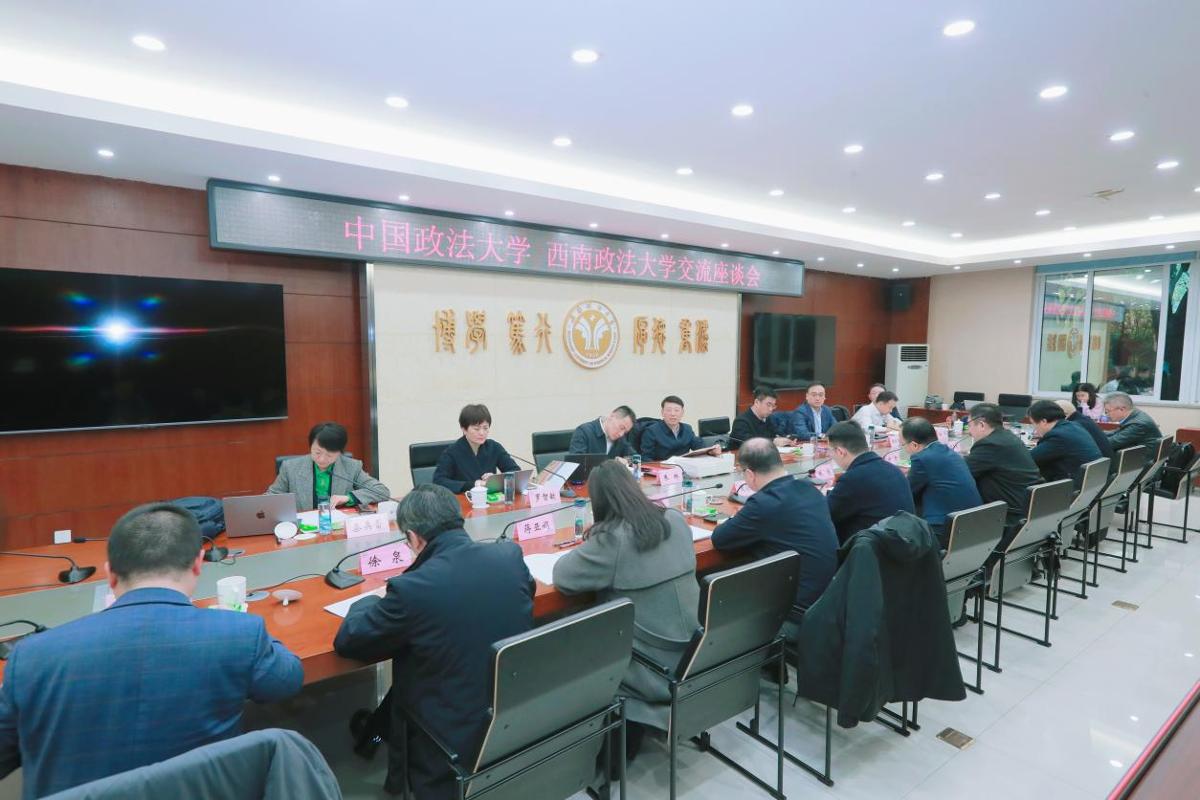 调研团一行先后赴西南政法大学、西北政法大学、中国—中亚机制秘书处,同西南政法大学党委副书记、校长林维、副校长周尚君,西北政法大学党委书记赵万东、校长范九利、副校长张荣刚、孙昊亮、常安,中国—中亚机制秘书处秘书长孙炜东座谈交流。