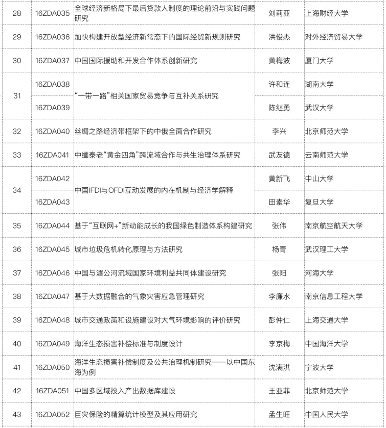 表1 我校2016年国家社科基金重大项目立项一览表
