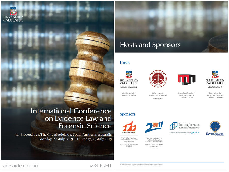 受国家“2011计划”司法文明协同创新中心和“111计划”证据科学创新引智基地联合资助,由中国政法大学、国际证据科学协会和澳大利亚阿德莱德大学法学院共同主办,阿德莱德大学诉讼法研究中心承办的“第五届证据理论与科学国际研讨会”,2015年7月22日至23日在澳大利亚阿德莱德市召开。来自五大洲包括中国、澳大利亚、美国、英国、瑞士、坦桑尼亚、南非等15个国家和地区的220多名证据法学者和法庭科学家参加了此次会议。会议中方参会人员43人,来自中国政法大学、北京大学国际法学院、四川大学、西南政法大学、北京外国语大学、北京交通大学、华东师范大学、华东政法大学、山东政法学院、公安部、中国国际经贸仲裁委、广州市公安局等单位。司法文明协同创新中心联席主任张保生教授率中国政法大学代表团共25人(其中教师21人,博士研究生4人)出席了会议。各国专家学者围绕本次会议主题“当代诉讼中的证明问题:证据法与法庭科学的发展和变革”进行了广泛而深入的交流。