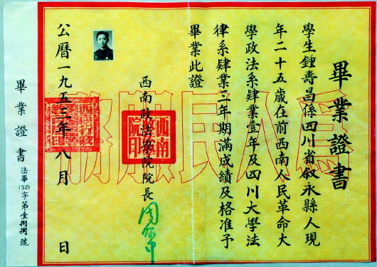 (西南政法学院第一张毕业证)
