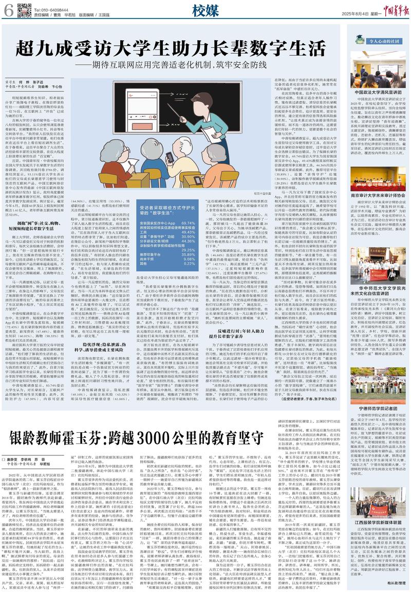刚刚过去的这个学期,霍玉芬一周有10节课,比退休前在法大时翻了一番,有时候累到直接在沙发上睡着;但她还是保持着热情,珍惜这个在退休之后再次回到讲台上教书育人、服务社会的机会。“作为银龄教师,我对知识、职业和法治中国建设有更深的感悟;而被国家需要、被社会需要、被学生需要,是一件很有成就感、很幸福的事儿。”