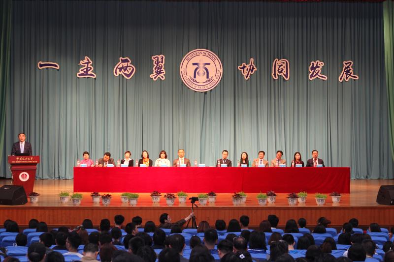 在“一主两翼,协同发展,培养社会需要的复合型人才”的新办学理念指导下,商学院改革创新以“撤所建系”实现“换道超车”,建立了以工商管理与经济学为根本、以世界上唯一的法商系和资本金融系为“两翼”、以财务会计系为基础、以国际商务系为拓展、以中国首创的企业史研究所为特色、以MBA为改革重点的“六系一所一中心”机构设置。刘纪鹏指出,目前商学院“撤所建系”的科研系统机构改革基本完成,并向在座师生宣布了改革后“六系一所一中心”的主要负责人及其团队成员,以整合优化配置商学院的师资力量,全面提升科研水平与教学质量,为实现双一流的商学院建设提供坚实基础。