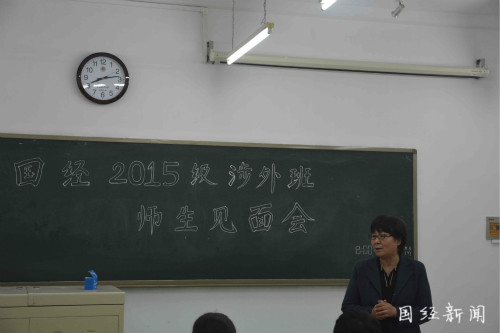 杜新丽老师首先就涉外班的设立、发展和重要意义向同学们做了相关说明。她表示,15年最新出炉的涉外班培养方案有了较大的改动和突破,更加注重多元化发展,不以专业局限强制给每位同学定位,鼓励同学们找准方向、敢于创新。