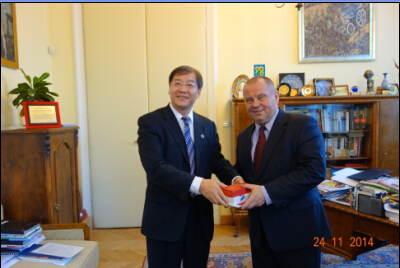 2014年11月24日至28日,我校法学院副院长焦洪昌教授率团访问了波兰共和国和匈牙利两国的高等院校及最高司法机关,同相关人员进行学术交流并就有关的合作事宜进行沟通协商。一同参加的代表团成员还有我校人事处吴平处长、法学院郎佩娟教授、郭琛老师、李强老师、郭晓飞老师,以及校财务处张红老师和武振兰老师。11月24日,代表团首先访问了波兰华沙大学。24日上午,华沙大学校长阿洛兹·诺瓦克教授( Alojzy Nowak)与法学院代表团举行会谈。诺瓦克教授和焦洪昌教授各自介绍了所在大学及相关学院的情况,并就拓展双方间学者学生交流,举行国际研讨会以及共同出版学术作品等问题交换了意见。双方一致认为应在现有的交流合作基础上进一步加强和扩大相关学院间的交流合作。
