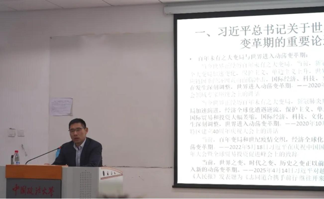 4月24日上午,法律学院主办的专家论坛暨涉外律师、国际仲裁项目2025年国际专题讲座公开课第一讲于学院路校区图书综合楼0411教室顺利举行。本次讲座主题为“世界动荡变革期与中国对外战略转型”,主讲人为中国政法大学全球化与全球问题研究所副所长、中国高等教育学会国际政治研究专业委员会常务理事兼副秘书长、博士生导师刘贞晔,讲座由法律学院私法研究所专任教师李琳主持。