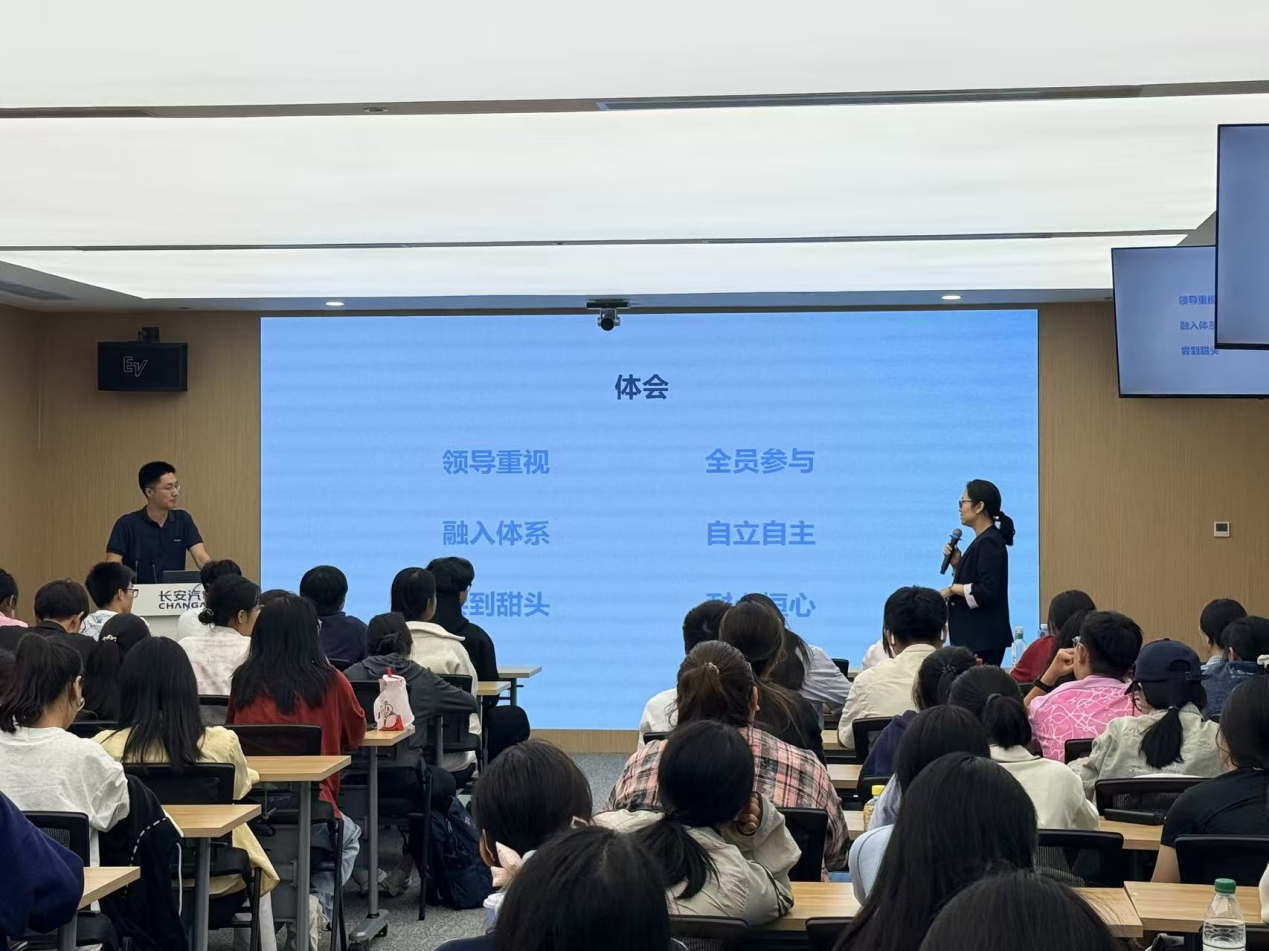 作为本次活动的核心环节,长安汽车北京基地车间负责人开展了《量产工厂数智转型分享》专题讲座。他结合长安汽车的实战经验,阐述了传统制造企业在数智化转型过程中面临的挑战与机遇,并分享了企业在生产优化、质量管控的智能化发展历程。讲座结束后,郭颖教授对本次实践教学进行总结。此次参访不仅将课堂理论延伸至真实工业场景,也让学生切身感受到数智时代对管理人才提出的新要求,鼓励同学们将所见所闻转化为学习动力,在未来的专业学习中不断深化理解,提升综合能力。
