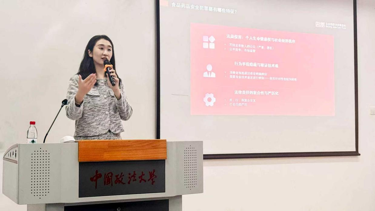 授课中,张缙律师以社会热点案例为切入点,先通过“西贝预制菜表述争议”“蜜雪冰城隔夜柠檬片舆论”“甘肃天水幼儿园点心致儿童血铅超标”等案例,结合《我不是药神》原型“陆勇案”、HPV疫苗造假案等,解析食品药品安全犯罪的行政法前置特点、公众多元态度及刑事取证难等现实问题,引发同学们对食品药品安全违法行为刑事可罚性的思考。