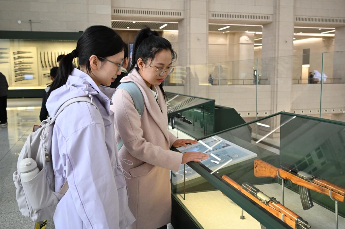参观过程中,同学们结合兵器陈列展中的实物展品、历史文献,畅谈对革命历史的新认知。2025级双硕士岳星颜表示:“从抗战时期的武器管理规章,到新时代的国防装备法规,展区里的文献串联起一条清晰的脉络——强军离不开法治,这让我对‘革命历史’的理解不再局限于战争故事,更看到了背后的制度力量。”