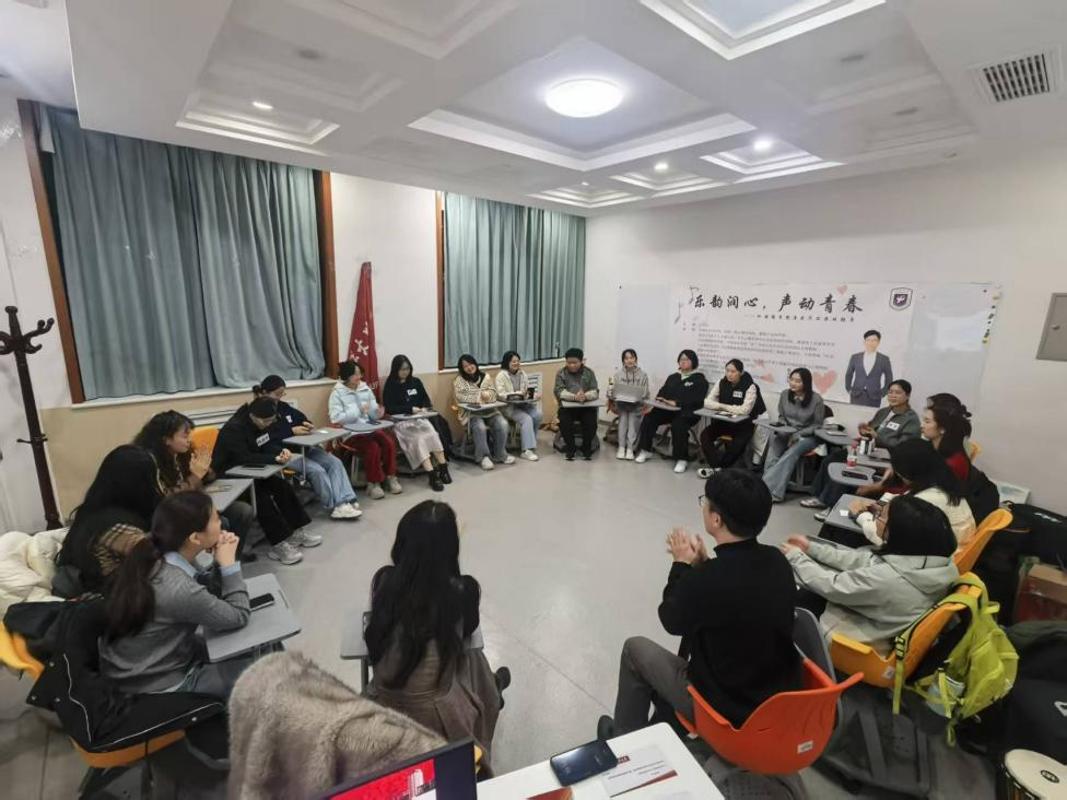 11月7日晚,外国语学院心理健康工作站“玉兰心舍”在格物楼115教室举办第四期音乐疗愈团体辅导活动。清华大学学生心理发展中心音乐团体咨询师孔祥阳受邀带领,围绕情绪识别、压力舒缓与同伴支持展开体验与交流。学院团委书记、辅导员许慧芳与本科生15个宿舍22名同学参加了本期团体辅导。