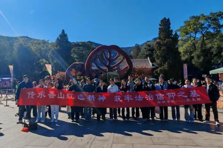 金秋十月,香山红叶似火。2025年10月26日,法律学院2501班党支部组织全体党员及积极分子一行共25人前往香山革命纪念馆、双清别墅及来青轩,开展"传承香山红色精神 筑牢法治信仰之基"主题党日活动,通过实地参观学习,重温革命历史,感悟红色法治精神。