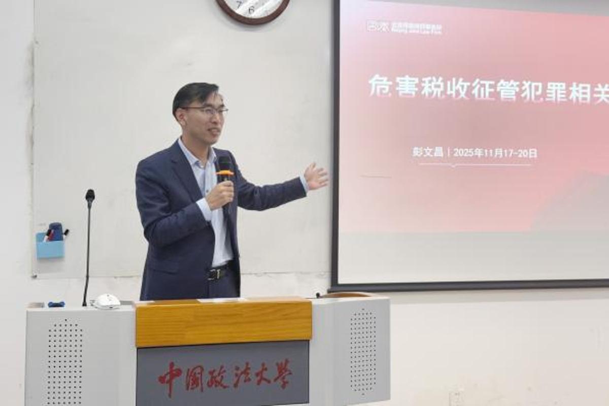 11月17日、20日,中国政法大学法律学院与北京周泰律师事务所共建的实务课程《刑事法前沿问题》第八讲、第九讲“危害税收征管罪相关问题”顺利举办。课程由北京周泰律师事务所高级合伙人彭文昌律师主讲,学院公法研究所副所长石亚淙老师主持,聚焦涉税犯罪核心法律问题与实务要点。