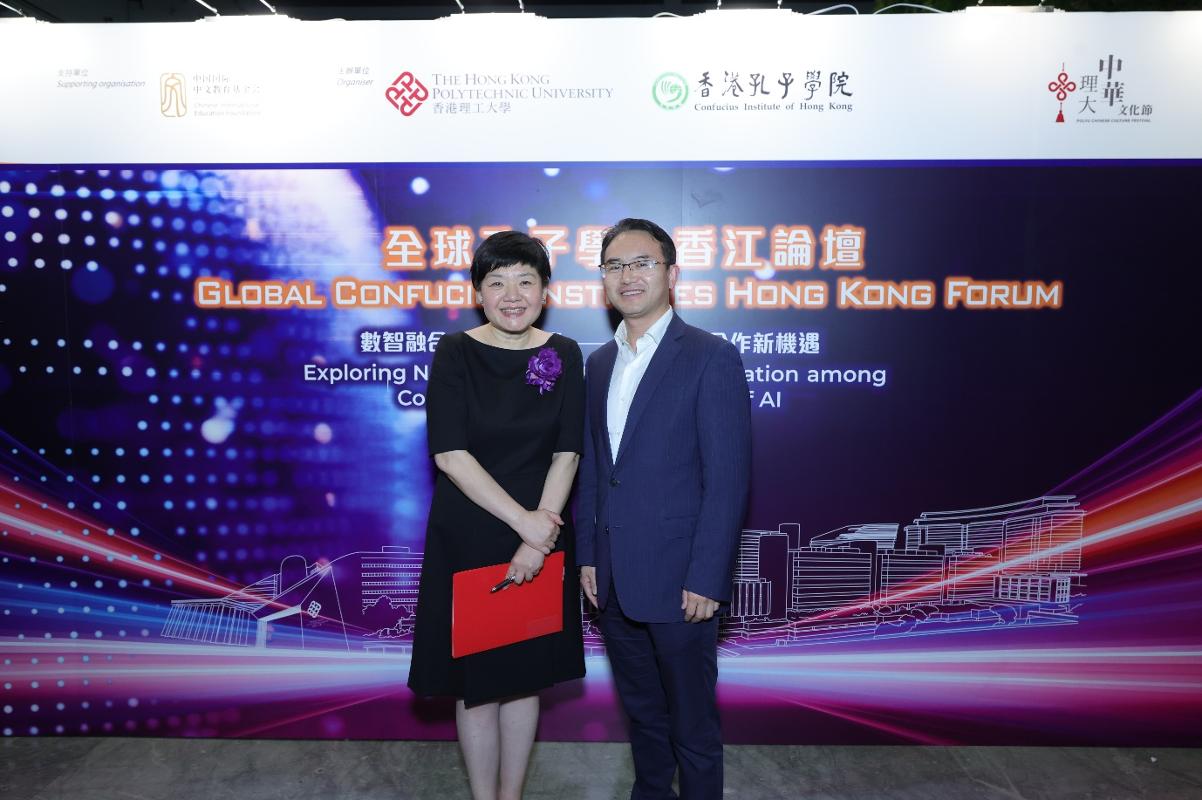 11月17日,由香港孔子学院与香港理工大学联合主办、中国国际中文教育基金会支持的全球孔子学院香江论坛在香港理工大学隆重举行。本届论坛以“数智融合·文化互鉴——共探孔院合作新机遇”为主题,旨在探讨数智时代国际中文教育的发展路径,推动全球孔子学院协同创新与高质量发展。来自69个国家和地区的79所孔子学院共150名代表参会。班戈大学孔子学院宋庆宝院长应邀出席本次论坛。