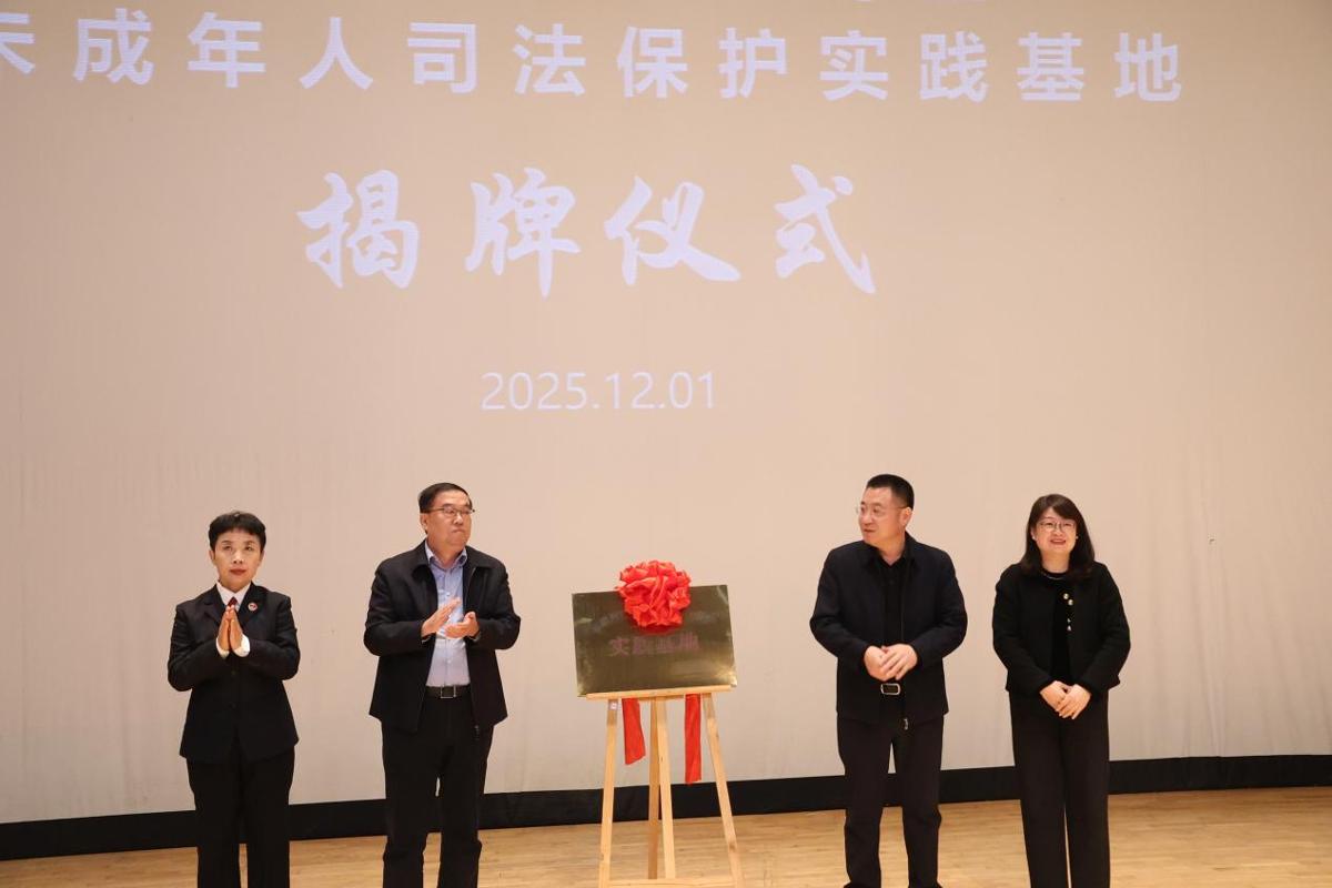 揭牌仪式后,学院党委书记周志荣发表讲话。他指出,本次三方共建实践基地意义重大,是构建未成年人全链条法治保障体系的务实之举、创新法学人才培养模式的关键探索、探索校地企协同社会治理的有益尝试。学院将发挥自身优势,在理论研究、人才输送、普法宣传等方面全力支持,与各方携手建好运营好基地,通过优质普法资源下沉,让法治精神真正走进青少年心中,助力打造具有区域特色的未成年人司法保护品牌。