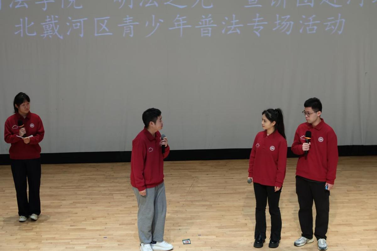 本次活动打破传统普法模式,以“沉浸式+互动式”形式为青少年呈现法治盛宴。学院“明法之光”宣讲团八位成员带来了《向校园欺凌说“不”》《校园反诈防火墙》两部法治情景剧,成为活动的一大亮点。