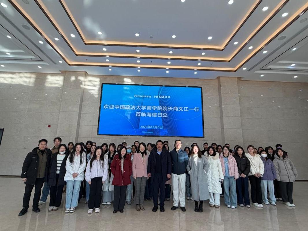 12月4日至5日,商学院院长商文江率师生代表团一行50余人,赴青岛海信集团开展深度研学。国际商务系教师梁涵、张婷婷,财务会计系教师何顶、刘玥,以及2025级国际商务(MIB)与审计(MAud)硕士专业学位研究生参加研学。此行旨在打破课堂边界,深入到中国卓越企业的鲜活实践中,探索法商融合的理论根脉。
