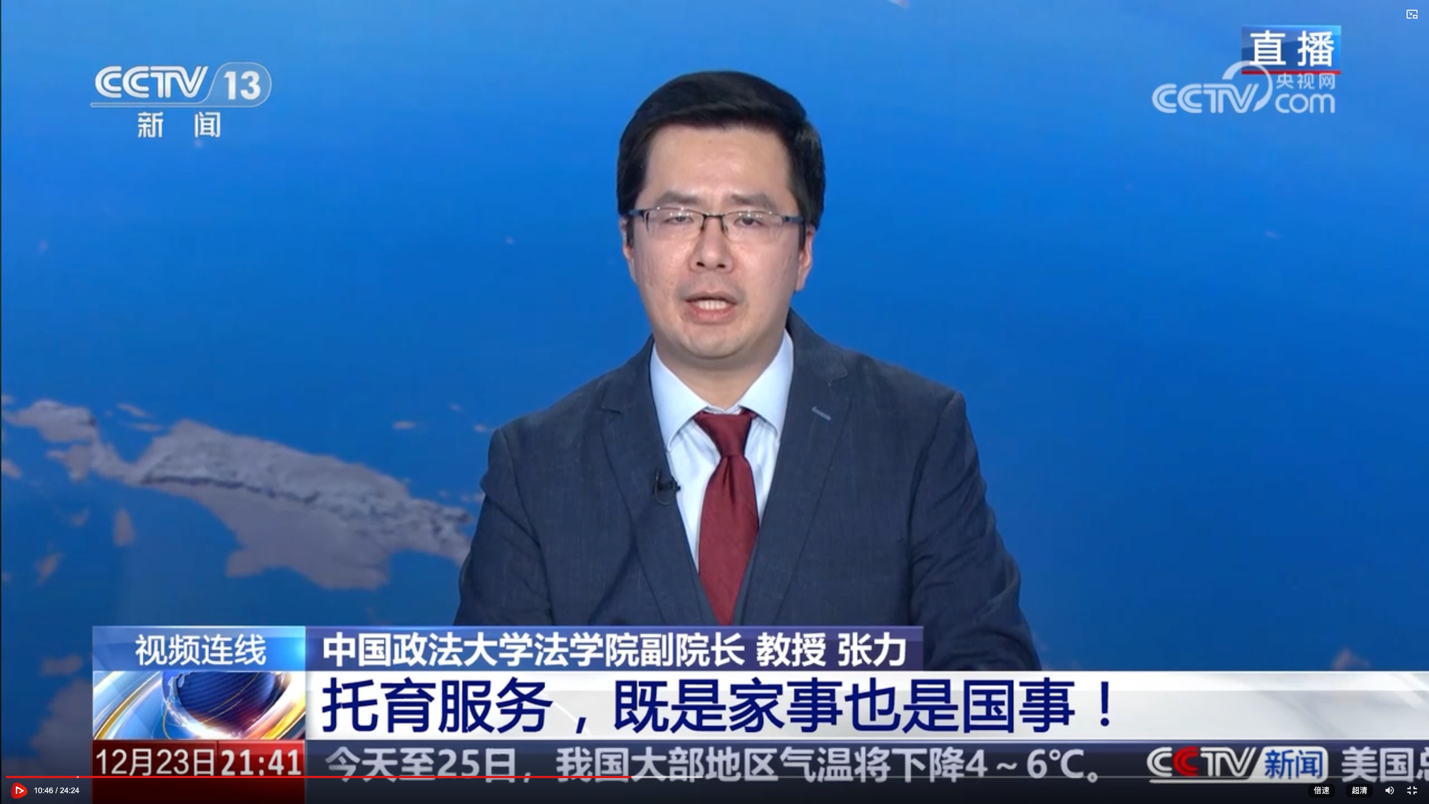 12月23日晚,中央电视台新闻评论栏目《新闻1+1》播出专题节目《托育服务,既是家事也是国事!》。法学院副院长、张力教授受邀连线节目,就我国托育服务现状、政策法规及未来发展等核心议题进行了深入解读。
