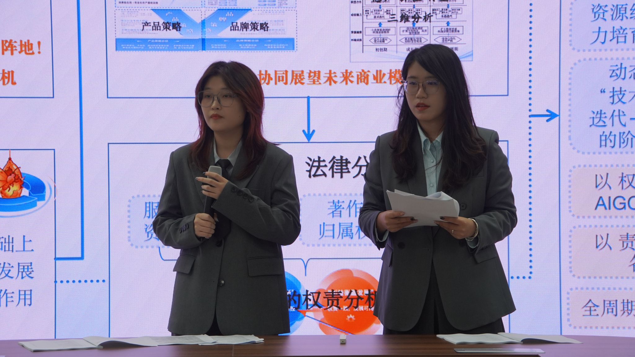 我校参赛团队紧扣大赛主题,围绕生成式人工智能平台的内容合规与商业模式优化展开深入研究,探讨其在内容责任、版权归属、服务资质与职业边界等方面的法律风险与治理挑战。团队以国产主权级大模型DeepSeek为典型案例,采用扎根理论与动态能力分析框架,尝试构建了AIGC平台商业演进与合规协同的研究模型。从法律层面创新性提出AIGC邻接权制度与“权利—责任”对等分配机制,为AI平台的合规发展提供了法商融合的新思路。