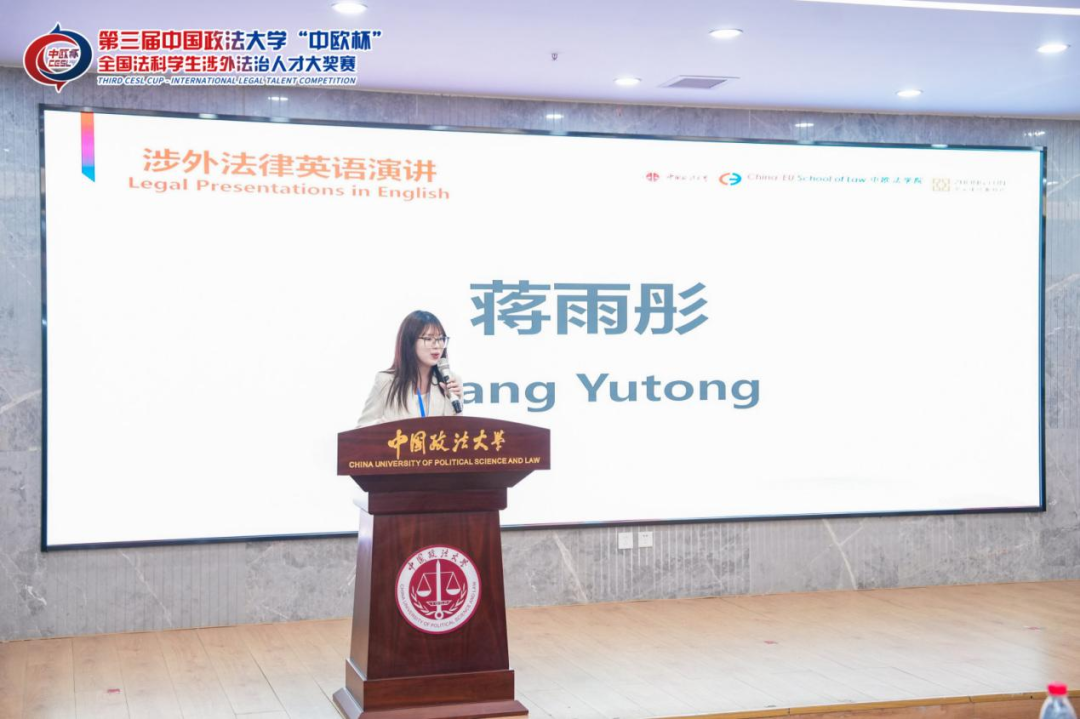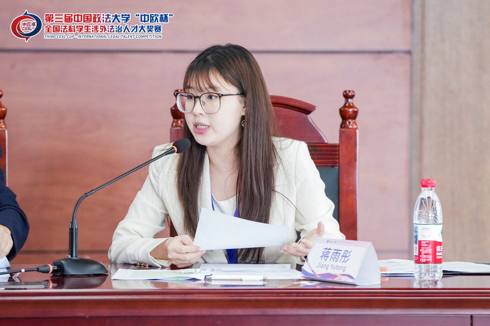 蒋雨彤,2025年5月为中国政法大学中欧法学院国际法学专业硕士一年级学生,第三届中国政法大学“中欧杯”优秀涉外法治人才一等奖获奖者。