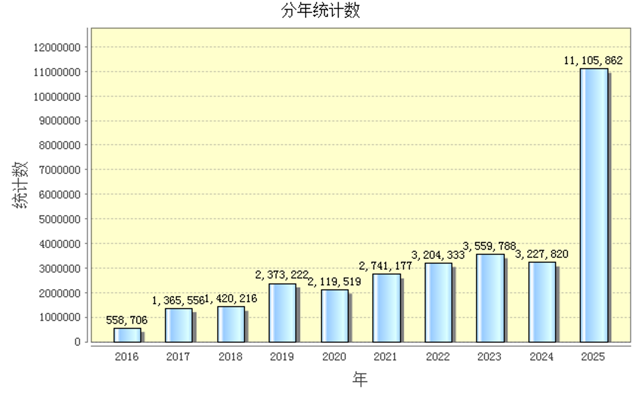 截至2025年12月30日,法大新闻网年度总访问量1110万余次,比之前多年有三倍以上显著增长,数据增量稍显异常,我们在后台数据筛查中发现,有个别区域出现异常访问数据,异常访问量大概有350万左右。结合来访IP统计数来看,今年和2024年相比,有2.7倍左右的增长,该数据相对正常。因此总体来说,2025年,法大新闻网的来访有较为显著的提升,这也意味着学校的新闻宣传工作得到了社会各界的更多关注。